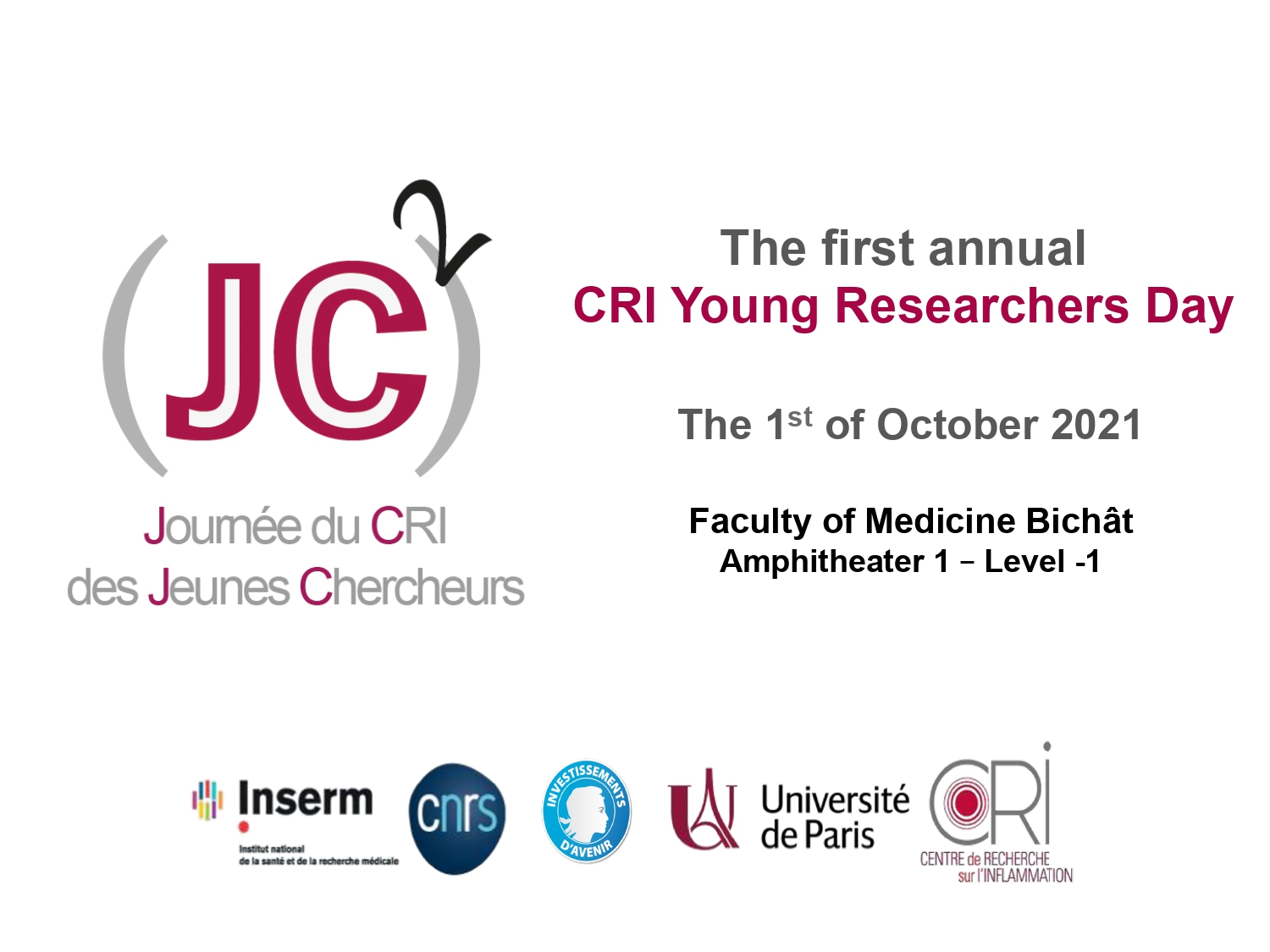 Les représentants des doctorants et post-doctorants vous ont invité à la première Journée du CRI des Jeunes Chercheurs, qui a eu lieu le 1er octobre 2021, à la faculté de médecin de Bichât. Après deux années passées plus ou moins devant nos écrans, cet événement en présentiel a été l’opportunité de se rencontrer et de découvrir les différents projets de recherche au sein du CRI et de l’U1152 à travers des sessions de présentations orales ainsi que des posters. Le jury a récompensé les meilleurs présentations et poster en fin de journée. Vous retrouverez le programme de la journée attaché en pièce jointe.