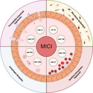 MicroRNA are small non-coding RNAs, playing a key role in homeostasis by regulating approximately 60% of the human transcriptome. Over- or under-expression of several distinct microRNAs is linked to the pathogenesis on Chronic Inflammatory Bowel Disease, by impacting several key functions of the digestive system, such as the barrier function, autophagy, and the host–microbiota communication. MicroRNAs are increasingly suggested as potential novel biomarkers in the diagnostic of these diseases, as they could be used to tell apart Crohn Disease from Ulcerative Colitis. Using animal models of colitis, several studies have investigated the role of specific microRNAs in key roles associated to the development and the sustenance of Inflammatory Bowel Disease. These findings may allow for future development of microRNA targeting therapies, in order to restore specific key functions of the gut homeostasis. The investigation of microRNA’s potential in assessing dysbiosis and their role as a potential tool for modulating the gut microbiome is still largely unexplored, with nonetheless some ongoing research, including our own, exploring these aspects. Here, we aim at providing an overview of the current known implications of microRNAs in Inflammatory Bowel Disease, as well as their potential use in theragnostic and their promises in personalized medicine.