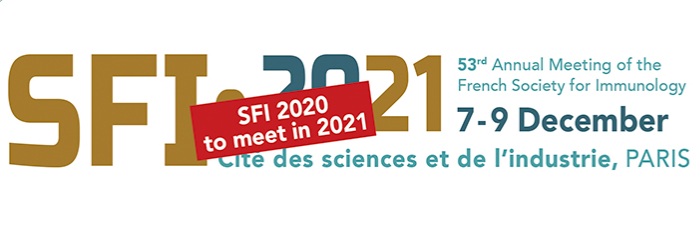 En raison de la situation des coronavirus, la réunion annuelle de la Société française d’immunologie (SFI) a été reportée et se tiendra désormais du mardi 7 au jeudi 9 décembre 2021 à la Cité des sciences et de l’industrie à Paris .