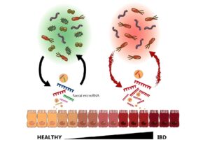 Les microARN [miARN], petits ARN non codants, ont récemment été décrits comme des acteurs essentiels de l’homéostasie intestinale. Ils peuvent interagir avec le microbiote intestinal de manière réciproque et affecter profondément l’état de santé de l’hôte, entraînant plusieurs troubles en cas de déséquilibre. Les maladies inflammatoires de l’intestin (MICI) sont des inflammations chroniques du tractus gastro-intestinal qui s’accompagnent d’altérations du microbiote intestinal et dont l’étiologie reste largement inconnue. D’une part, les miARN de l’hôte pourraient jouer un rôle important dans la physiopathologie des MICI en façonnant le microbiote intestinal. D’autre part, le microbiome intestinal pourrait réguler l’expression des miARN de l’hôte, entraînant un dysfonctionnement de l’épithélium intestinal, une altération de l’autophagie et une hyperactivation immunitaire. Leur impact réciproque pourrait être utilisé à des fins thérapeutiques. La récente revue de Maite et Emilie décrit les dernières recherches et suggère des mécanismes par lesquels les miARN et le microbiote intestinal, en tant qu’acteurs conjoints, pourraient participer spécifiquement à la physiopathologie des MICI. Ce travail discute du pouvoir diagnostique et du potentiel thérapeutique résultant de leur communication bidirectionnelle et met en lumière son application future dans le traitement des MICI.